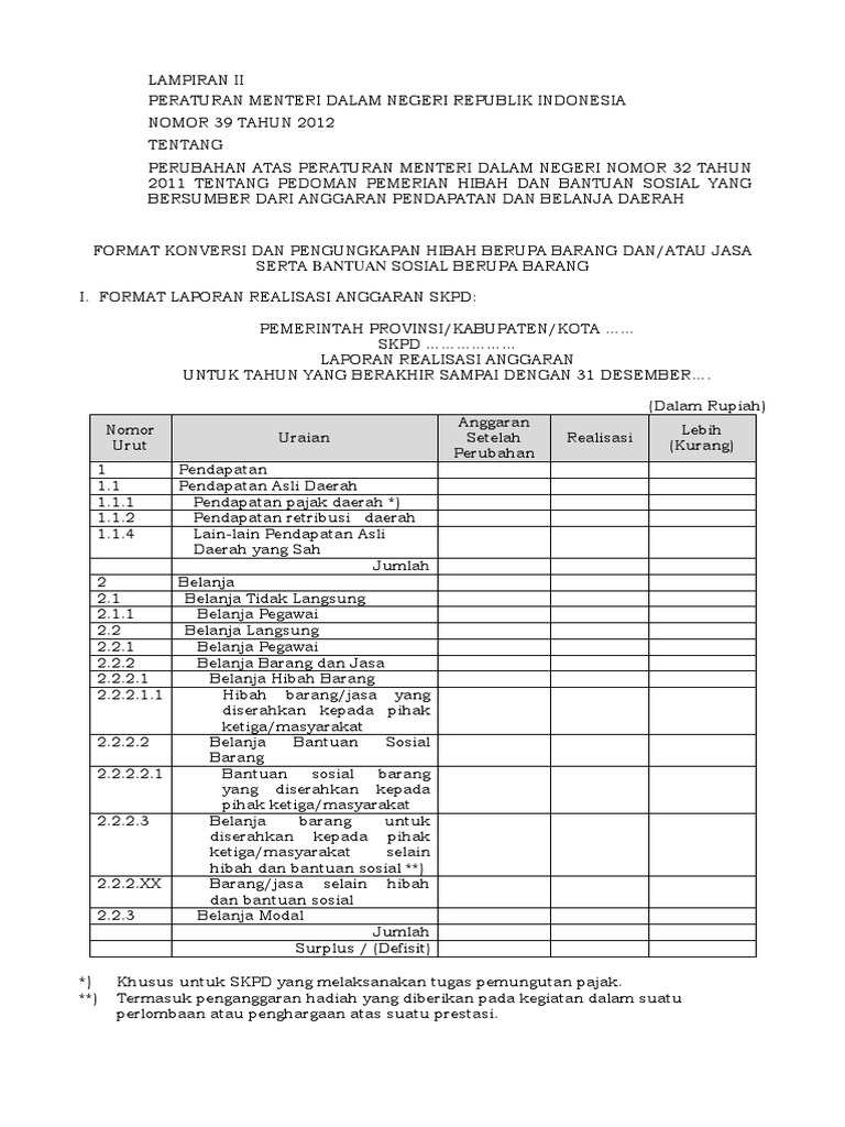Permendagri 39 tahun 2012 tentang hibah dan bantuan sosial. Mei 2012 Mendagri kembali menetapkan Peraturan Menteri Dalam Negeri Nomor 39 Tahun 2012 tentang Perubahan Atas Peraturan Menteri Dalam Negeri Nomor 32 Tahun 2011 tentang Pedoman Pemberian Hibah dan Bantuan Sosial yang bersumber dari Anggaran Pendapatan dan Belanja Daerah Permendagri 392012. Nomor 39 tahun 2012 tentang perubahan atas peraturan menteri dalam negeri nomor 32 tahun 2011 tentang pedoman pemberian hibah dan bantuan sosial yang bersumber dari anggaran pendapatan dan belanja daerah dengan rahmat tuhan yang maha esa menteri dalam negeri republik indonesia menimbang. Permendagri 39 tahun 2012 perubahan atas peraturan menteri dalam negeri nomor 32 tahun 2011 tentang pedoman pemberian hibah dan bantuan sosial yang bersumber dari anggaran pendapatan dan belanja daerah.
