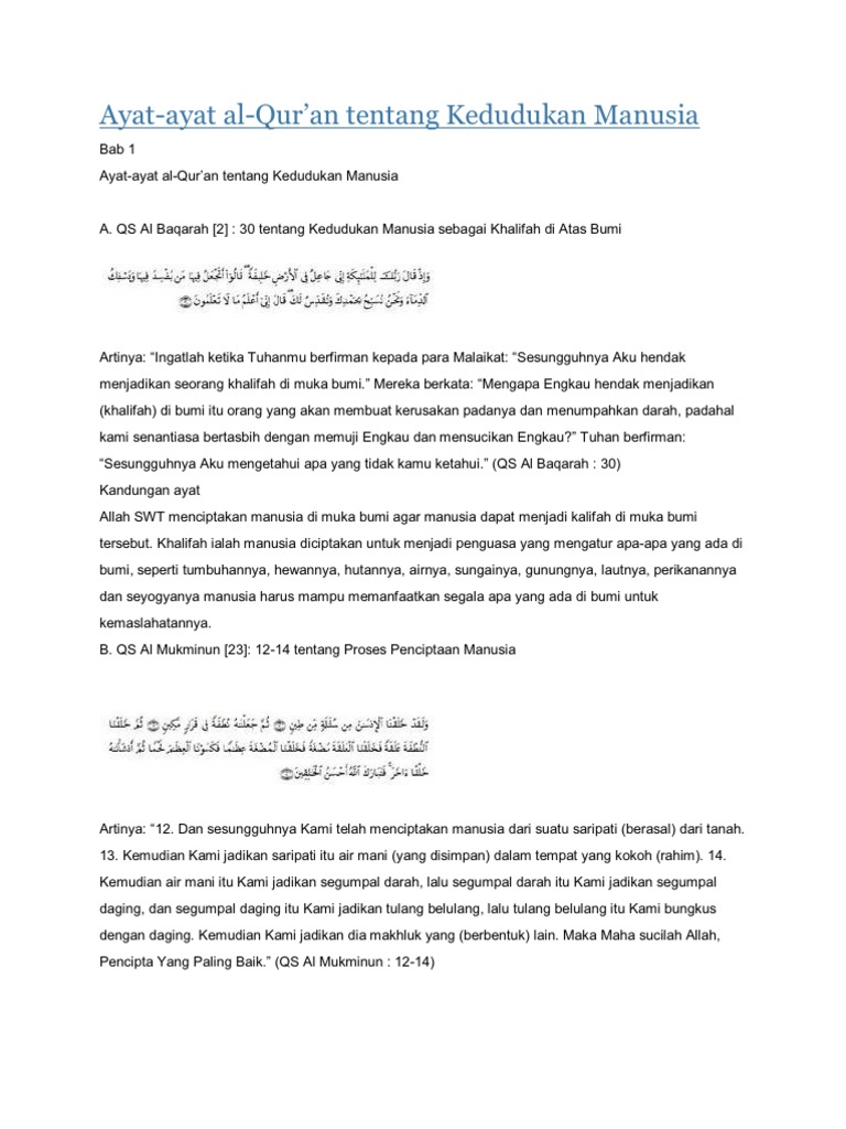 Ayat Ayat Al Quran Tentang Kedudukan Manusia