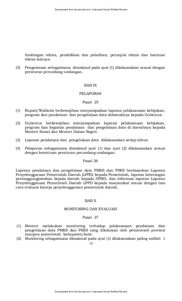 Pasal 13 1 Ketentuan lebih lanjut mengenai penyaluran Bantuan Sosial secara non tunai diatur dengan peraturan menteri yang memiliki program Bantuan Sosial.